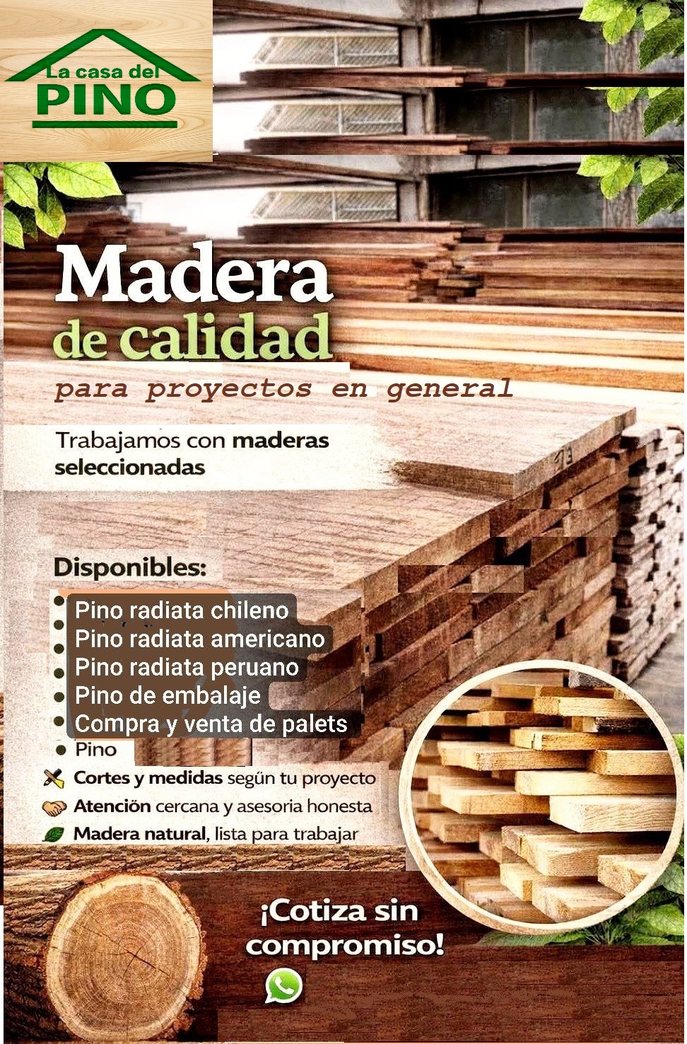 ¡ Bienvenidos a La Casa Del Pino ! . Somos una empresa especializada en la venta de tablas de pino radiata de alta calidad para satisfacer las necesidades de muebles, pallets y proyectos de construcción y arquitectura. Confíe en nosotros para obtener productos duraderos y a precios competitivos.
